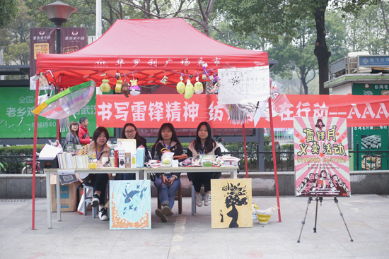 分团委学生会在南湖校区华罗利广场举办了一场“雷锋月义卖活动”,号召大家积极参与公益活动以提高大家的公民意识和社会责任感。