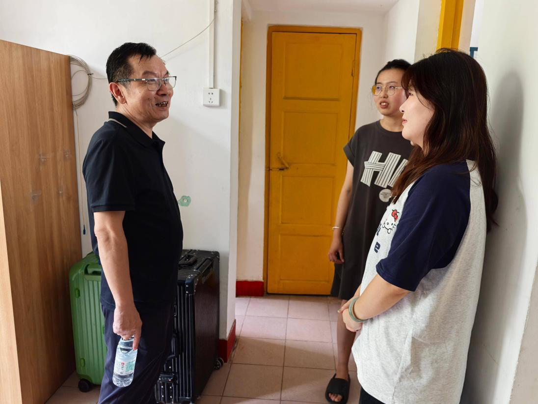 为切实了解2025级新生入学适应情况,助力新生快速融入大学生活,学院党委书记刘元文、院长石元伍一行深入新生宿舍,实地查看寝室环境、与学生们进行亲切交流,为他们送去学校的关怀与温暖。