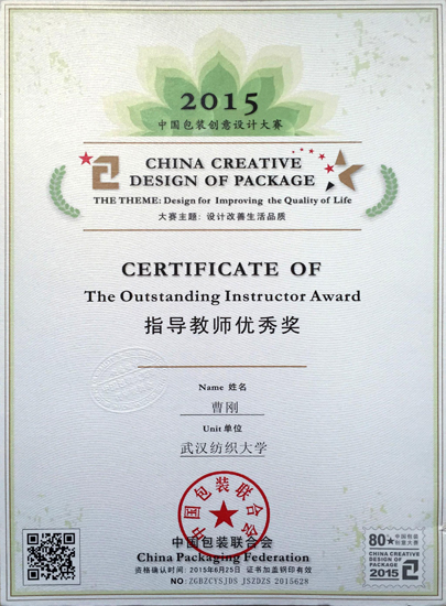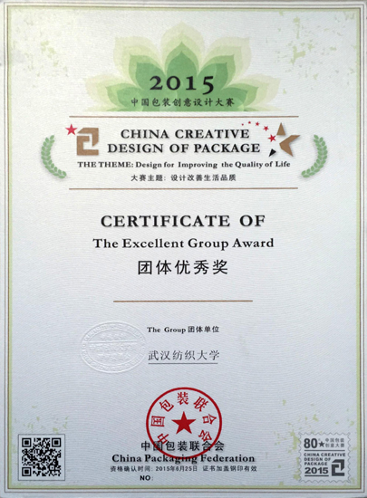 日前,2015年中国包装创意设计大赛落下帷幕。武汉纺织大学师生共收获十多个奖项,其中,艺术学院曹刚老师作品《香泉映月》包装设计获得专业组一等奖1项、杨薏、薛燕妮等老师作品获三等奖5项,马婧逸作品《初心香包》包装设计、杨林作品《如晤》包装设计获本科以上学生组一等奖2项、郭辉辉等同学作品获二等奖4项、三等奖5项。此外,武汉纺织大学还获得了团体优秀奖,曹刚老师获得指导教师优秀奖。