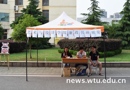 以青豆寓“清”,以莲花指“廉”。5月8号由校纪委和艺术学院主办的武汉纺织大学第十七届成才美育节暨第五届“我爱阳光”廉政书画展开展,大学生以艺术作品的形式阐释自己对“廉洁”文化的理解。