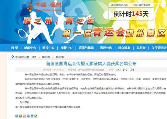“第一届全国青年运动会”由国家体育总局主办,福建省人民政府承办,将于2015年10月在福建省福州市举行。组委会于2014年4月面向社会公开征集第一届青年运动会的会徽、吉祥物等视觉形象标识类作品,共收到2010件作品。最终经过严格评选,共评出视觉形象标识类153件(其中吉祥物26件)作为入围奖。随后从这153件入围作品中评选产生了首届全国青年运动会的吉祥物。