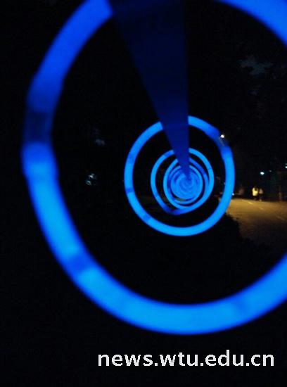 此外,蓝灯志愿者还在校内举办了宣传活动。他们在校园的树上系上了蓝丝带挂上荧光棒,并向学生分发宣传单,普及自闭症知识,让更多同学了解到这一群体,也让“星星的孩子”得到更多的关注。