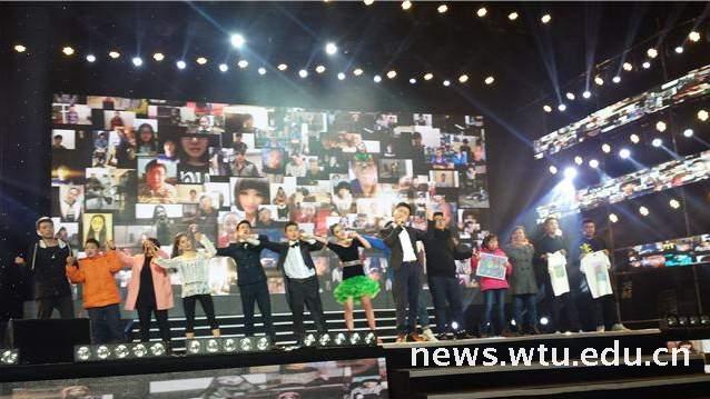 今年10月,高校达人秀选手来到我校,成为了蓝灯志愿团的志愿者,他们在艺术学院“武汉市自闭症儿童活动基地”里,参加了周六关爱自闭症儿童的活动,为孩子们表演舞蹈、教孩子们唱歌,他们的热情和善良为孩子们驱散了冬日的严寒,让孩子们感受到了无限温暖,也给予了他们继续坚持的勇气和动力。全场播放了“蓝灯行动”的VCR,蓝灯志愿团创始人李震同学上台,讲述了4年来,不惧艰辛、坚持开展“蓝灯行动”的心路历程,并与自闭症儿童、达人秀选手和观众们一道唱起了歌曲《隐形的翅膀》,让不少观众感动万分,洒泪现场,也将全场晚会推向了高潮。湖北广电“长江云APP客户端”和湖北网络广播电视台同步视频直播了总决赛的盛况。