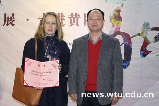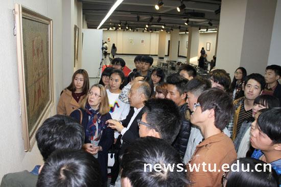随后,娜达莉亚教授与其先生共同为在场师生带来了一场中文和乌克兰语的双语讲座,并结合展出的画作,做进一步的历史背景阐述,受到学生们的热捧,一名学生看完后不由的赞叹:“太美了”。