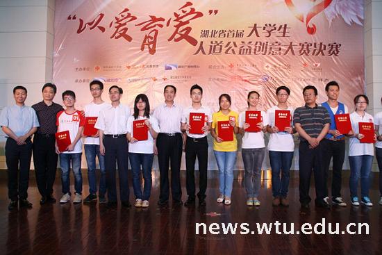 5月27日,湖北省首届大学生人道公益创意大赛决赛在武汉大学化学与分子科学院报告厅举行。省红十字会党组书记、常务副会长贺方红,武汉大学党委副书记、副校长王传中,省红十字会专职副会长郑军、副巡视员邓红,湖北广播电视台副台长向培凤,湖北日报传媒集团副总编辑赵洪松、总编助理张先国等现场观赛并出席颁奖仪式。著名主持人崔永元担任主评委。