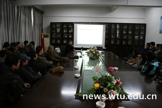 11月27日下午15:00,湖北工业大学艺术设计学院刘显波教授应邀在我校南湖校区艺术楼会议室作了一场关于“明清家具的收藏鉴赏概说”的专业知识讲座,吸引了广大艺术设计专业同学前来聆听。