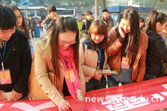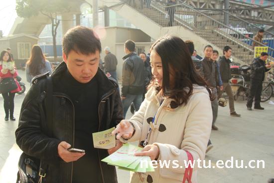 再一次受邀参加武汉市防艾宣传活动,同学们的热情服务不仅得到了路人的肯定和理解,同时也让省疾控中心的领导感受到了武汉纺织大学学生以人为本的服务精神。