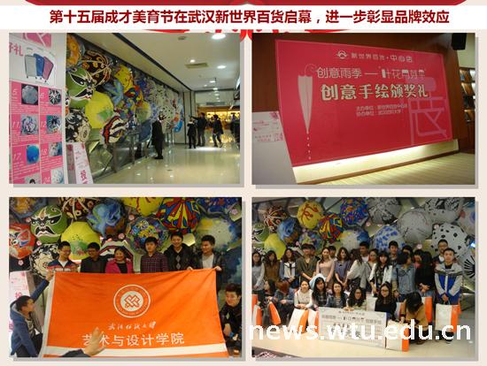 第十五届成才美育节在武汉新世界百货启幕;学院大学生创新创业实践团队形成一个注册公司、六个团队工作室、五个专业方向为基础的创业实践团队,今年,活体雕塑工作室的学生已经在多个地方进行了商业演出,墙绘工作室在益达杯创业大赛中获得第三名的好成绩。