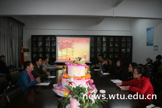 学生党员“政治生日”是指其被支部大会讨论通过为预备党员的周年纪念日。活动伊始,全体党员重温了入党誓词,再一次向党组织庄严宣誓。接着,学生党员代表汇报了自己在预备期里的成长经历和感受;两名学生党员表演了诗朗诵《党颂》,回顾了中国共产党成立之初的情景。与会领导和老师为参加本次活动的50余位学生党员赠送了“政治生日”贺卡,并点燃了生日烛光。