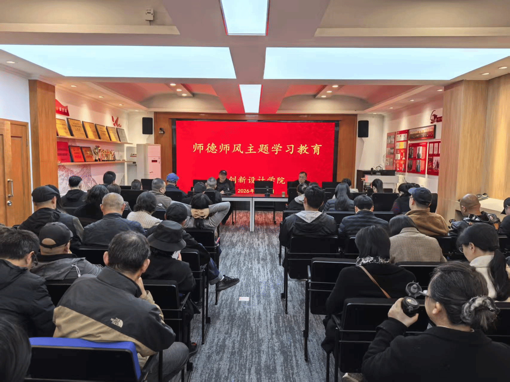 刘书记传达了学校《关于开展2026年师德师风建设月活动的通知》精神并通报了《创新设计学院师德师风建设月方案》。