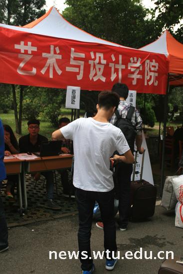 9月6日,2013级新生开始报道,武汉纺织大学展开怀抱喜迎新主人。艺术学院十余名党员师生现场帮扶贫困新生。