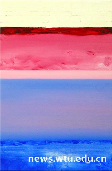 此次展出的艺术作品表达了杨老师近几年专业研究的最新前沿走向:在二十世纪艺术发展的今天,如何带给人们新的视觉审美——将风景绘画和其它的绘画进行比较和联系,通过画面的颜色对比展现出作品的张力.对杨老师而言,一方面颜色的空间效果是一个重要的问题,另外一方面是通过颜色的延伸形成画面边缘的视觉变形……