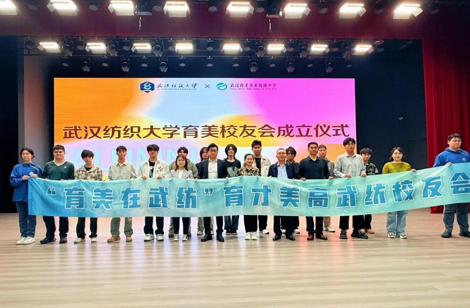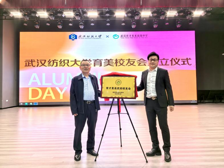 交流结束后,举行了武汉纺织大学育美校友会成立仪式,刘元文、雷意明共同为校友会揭牌。