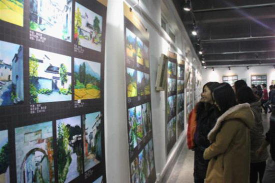 本次作品展共展出2011级学生上百幅优秀写生作品,以安徽,河南两省为主的地方建筑风格,特色风景和民俗风情图画作品。参展作品内容种类繁多,表现手法多种多样,有写实的、有意象的,有的描绘了当地的风土习俗,有的描绘了当地的秀美山河,每幅画都凝结了同学们汗水和心血,可以说是精心绘制而成。这些作品既充盈着生活气息又带有艺术灵感,同学们在专业老师的指导下把色彩颜料运用的惟妙惟肖,有古老的磨坊、村舍、小桥、百草等,都呈现出生机勃勃的景象,让人犹如身临其境。饱满丰富的色彩,表达了浓厚的人文气息,吸引了众多学生驻足品评。同学们那支形色兼备深具魔力的画笔,解剖大地,季节,自然的经络,描绘了远比我们肉眼所见更为真实的场景------- 回忆,思索,幻想中的,心灵深处的生态景象------天地万物,相生相克的景象。
