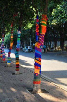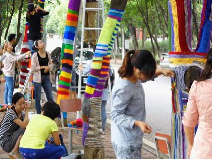 染美091班授课。课程设计主题为:yarnbombing(线的轰炸)。