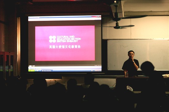首先,主持人为本次讲座作了简短的致辞,并向各位来宾表示了热烈的欢迎。接着,演讲正式开始,沈衍老师详细的向学生们讲解了音乐动画的相关知识,演讲期间播放了他们精选20部最富创意性和趣味性的英国音乐动画录影带,这些音乐录影带来自新晋艺人、刚崭露头角的乐队以及老牌音乐组合,制作手法丰富多样,并且结合了大量的动画效果,给在场的师生留下了深刻印象。