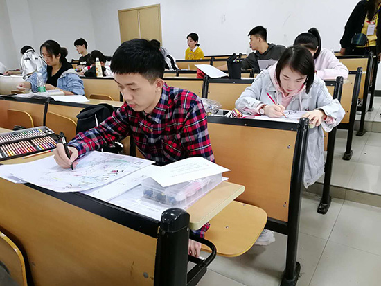 本次大赛采取远程网上评审、优秀选手答辩和专家现场提问以及现场手绘的形式进行综合评分。大赛评委会对全省各高校提交的作品进行远程网上评审,选拔出了进入初赛的选手。在复赛的答辩环节中,我校学生针对评委的提问,详细介绍了作品的创作灵感、创作过程、主题思想及表现形式,得到了评委的一致好评。