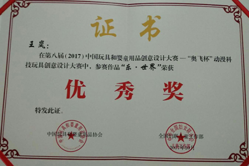 产品设计系11401班王岚同学凭借其在《超级飞侠》国产系列儿童片中汲取灵感所设计的作品“乐·世界”获得该项比赛的优秀奖,同时在产品设计系全体老师的悉心组织下,我校获得优秀组织院校奖,闫俊老师获得该项赛事的优秀指导教师称号。