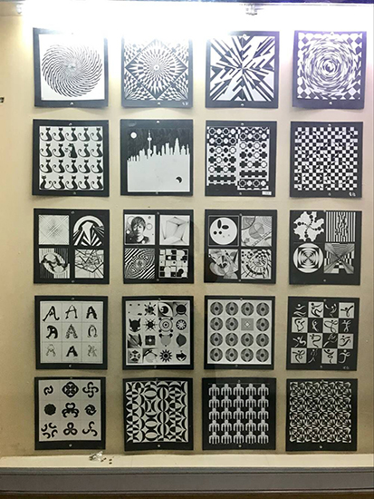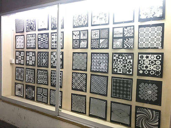 12月21日,艺术学院在南湖校区艺术楼东北4楼橱窗举办了《平面构成》课程作业汇报展。本次汇报展共展出了环艺11602班全体同学近百幅优秀作品。