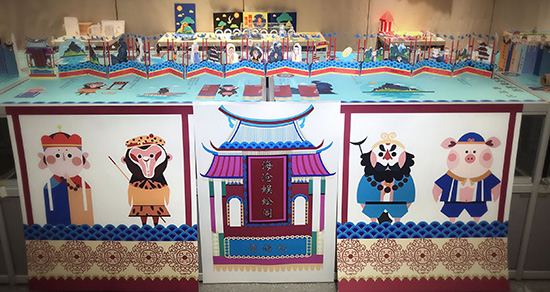 一楼展厅展出。展览汇集了民间美术、展示设计、书籍设计、装饰绘画等4门实践课程,覆盖了17级研究生、14级本科生、15级本科生等三个年级学生,遴选出百余件课程实践作品。