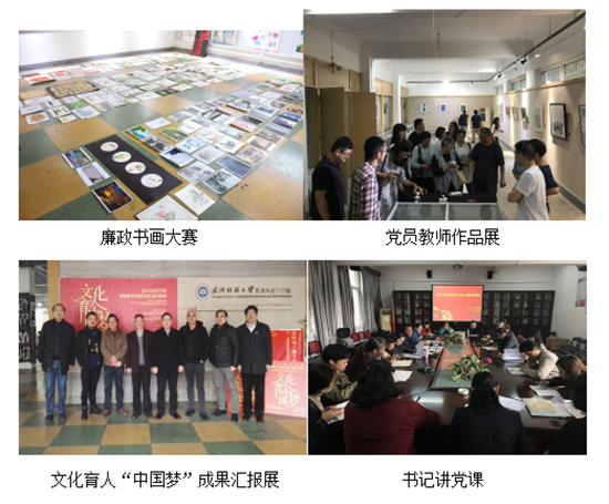 第二届全体党员教师作品汇报展;举办课程教学“教书育人”成果汇报展;举办党支部书记培训班;建设“示范党支部”;推动学院“特色党课”和“文化自信——中国优秀传统文化宣传”特色活动。