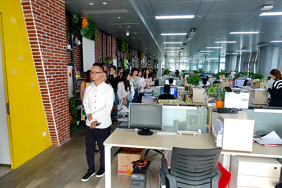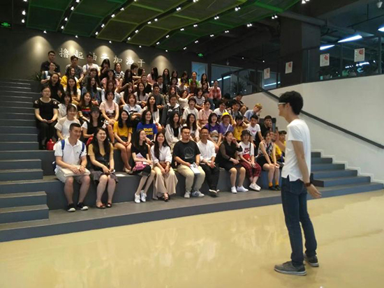 一行人来到广州市越秀区省广集团。交流会伊始,省广集团覃总和经理对我们的到来表示热烈欢迎,并带领学生参观集团大厦每个楼层的工作环境,在参观过程中,学生们积极提问,工作人员都耐心一一解答。在会议室,集团经理用PPT的形式向我们展示了省广集团规模,文化和发展方向。首先介绍了“阿里巴巴鲁班系统”,其次讲述设计师的“四点思维”,“商业思维、品牌思维、场景思维、技术思维”。对品牌符号,场景即体验,淘宝页面设计交互设计书籍等都做了详细的案例说明。最后给学生们的“四点建议”,“节操、逼格、专一、视野”。用设计的眼光改变世界,以大神为目标,多拿奖项,不断学习,持续创新,成为专业人士。