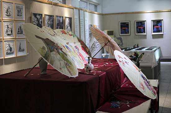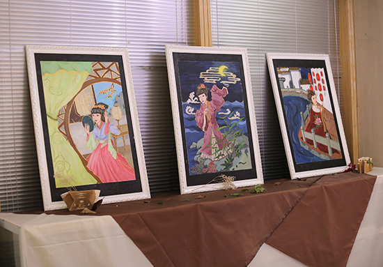 艺术品投资与鉴赏专业作品展呈现多样性与创新性的特点,种类丰富,涵盖了岩彩画、版画、油画、国画工笔、手工制作,书法,服饰等,体现了18届艺术品鉴赏专业的本科毕业生们的专业水平与能力素养,他们倾尽心血创作出一个个独一无二的作品,好像一颗颗璀璨光华的珍珠,映射着明代人们的生活。其中,张子璐同学的《刻山水》,让人感受自然乡村的美好,使观赏者同样生活在安静惬意之中,刘雪颖同学的《梦中微澜》将汲取了戏曲元素的工笔画描绘在油纸伞上,张宇婵同学的一副岩彩作品《青瓦知禅》,巧妙地运用岩彩的特点,古今结合,表现出了矿物晶体的质感,自然映射出一种其他画种所没有的装饰美。