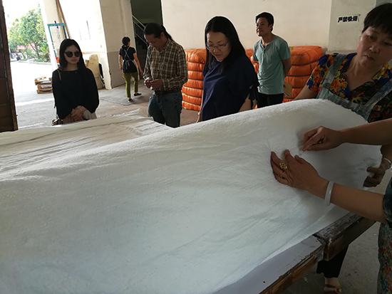5月15日上午,工艺美术系主任高波、专业教师李明娟和韩霜一行三人赴浙江省浦江县浙江绗缝协会进行调研,在浦江县科技局局长钟金伟及浙江绗缝协会会长潘鸣的陪同下赴浙江千百卉家纺有限公司调研,期间参观了绗缝车间、成品展厅,并观看了部分成品的生产流程,随后双方就学生专业实践培养和产学研合作事宜交换意见,为实现学院和企业共同发展,双方还就建立浙江省绗缝产业研发中心事宜进行深度交流。