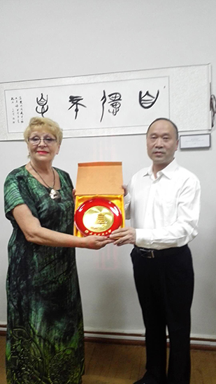 瓦列金娜馆长深情地说,中国人民和乌克兰人民有着源远流长的深厚友谊,历史悠久,中华民族是一个伟大的民族,在中国共产党的领导下取得了举世瞩目的成就!这次展出的国画和书法作品,代表了中国悠久的历史文化和艺术形式,让乌克兰人民了解东方的文化艺术。武汉纺织大学即将迎来自己的建校60周年庆典,哈尔科夫美术馆表示衷心的祝贺!