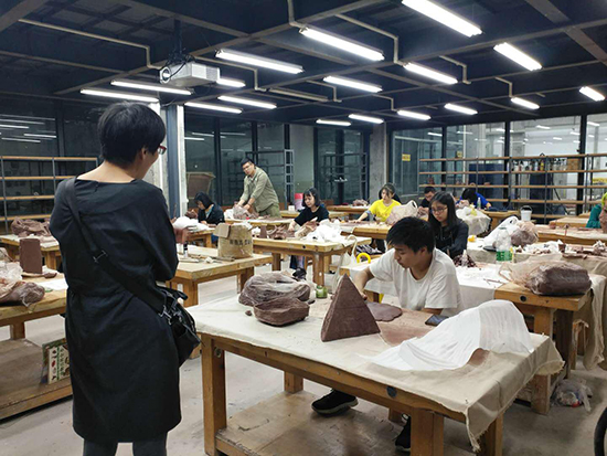 一行参观了综合材料实验室、喷釉工作室、玻璃实验室、摄影实验室和精工实验室。