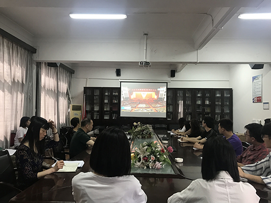组织全体教师与学生代表在南湖校区艺术楼二楼会议室集中观看了纪念马克思诞辰200周年大会直播。学院党委书记陈良栋支持观看会议。