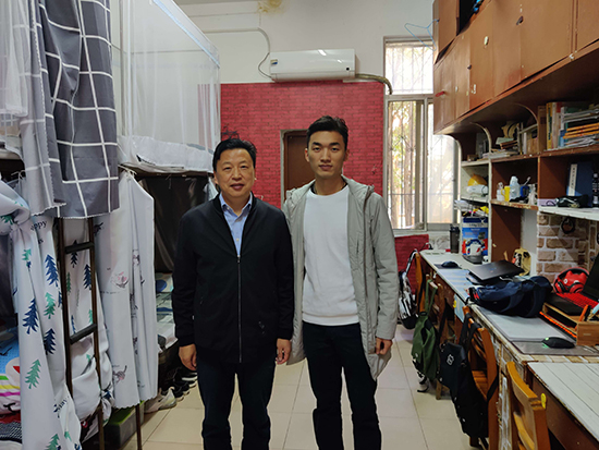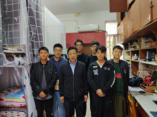 实验室,走访了学生宿舍,与结对宿舍、结对学生亲切交谈,并给结对学生送去了慰问金。