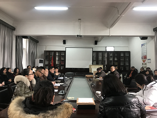 在南湖校区艺术学院二楼会议室召开了全院教职工理论学习大会,会议由党委书记陈良栋主持。