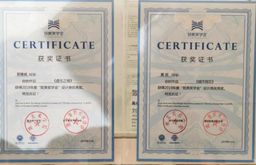 公共艺术系11602班的黄奕、郭唐两位同学荣获2019湖北美术学院专业奖学金——致美奖学金设计类优秀奖。本次致美奖学金共评出特等奖一名,优秀奖62名。