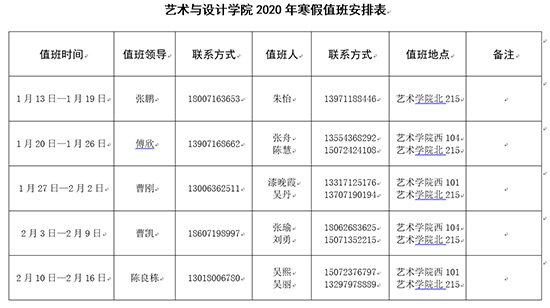 色情直播平台 2020年寒假值班安排