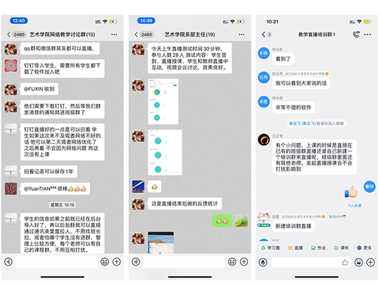 根据当前疫情形势调整为“线上教学”的第一周。学院共有30位教师通过钉钉、腾讯课堂、企业微信、QQ、学习通等多个平台进行授课,涉及31个教学班。线上开课以来,教学运行平稳有序,院领导还通过多种方式看课听课,多方面了解线上教学情况,老师们也纷纷就网络教学模式发表意见。