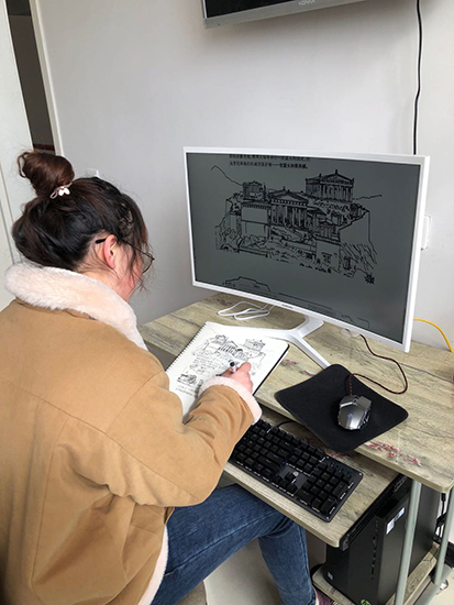 当然,和线下课程比,遗憾肯定是有的。比如《建筑初步》这门课程往年都要画传统渲染技法,今年因为物质材料的限制,只能取消,改为全画线稿。这些可以今后线下课程再去补充吧。