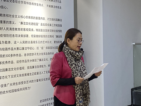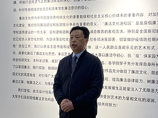 马克思主义学院党委书记朱丽霞在致辞中表示,“我爱阳光”廉洁教育艺术设计绘画展已经成为校园文化活动特色品牌。它不仅对全校师生反腐倡廉价值取向具有积极作用,同时在一定程度上成为思政育人的实践新载体。希望通过廉洁教育活动提高师生们对反腐倡廉制度文化的理解和认知,营造出良好的校园廉洁文化氛围。