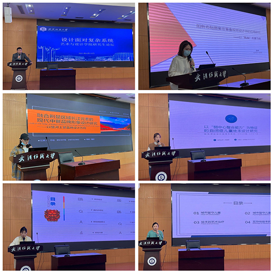 视觉传达专业5个研究生登台汇报,他们结合各自的研究成果,通过PPT展示,阐释了成果的主要内容、研究核心与创新之处。