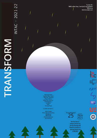 2021年9月8日,由安大略省艺术大学(OCADU)、墨西哥州自治州大学(UAMEX) 、韩国中央大学(CAU)、坦佩雷应用科技大学(TAMK)、德国欧洲应用科学大学(UE)以及武汉纺织大学(WTU)联合发起“INTAC2021-2022”国际会议在Zoom线上举行。INTAC全称为“International Art Collaboration”,旨在构建一个国际性的线上学术交流平台,提供给学生与老师一个实时动态的良性互动创作,INTAC主张来自世界各地的院校采取自由的团队合作方式,通过社交媒体的相关软件进行团队成员之间对于创作的想法与灵感。在这样的空间里,学生在自己的团队中,不断地学习和沟通以虚化时空的带来的限制,促进自己本身对于语言障碍,文化差异挑战的能力。