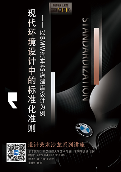 环境设计系举办了以“设计&审美”为主题的系列线上艺术沙龙座谈会,本次主题为“现代环境设计中的标准化准则——以BMW汽车4S店建店设计为例”。主讲人为学院副教授曹凯。