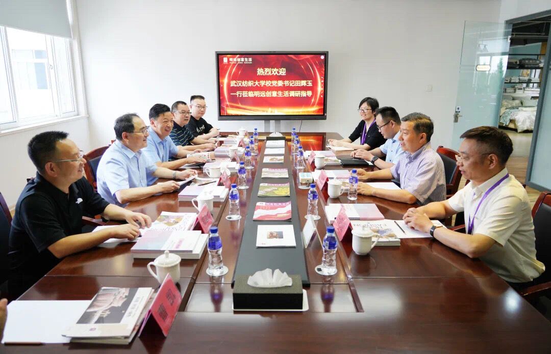 仪式前,田辉玉一行参观明远创意生活展厅及厂区,座谈访企拓岗提供就业岗位,并就产教融合、深度合作进行了充分的交流和谈论,商定后期适时来校举行专场招聘会等。座谈会上,田书记表示,武汉纺织大学与明远创意生活已经有十余年的科研合作历史,具有良好的长期的合作基础,相信在不久的将来,双方一定能在校企合作中寻求更大的进步和突破。