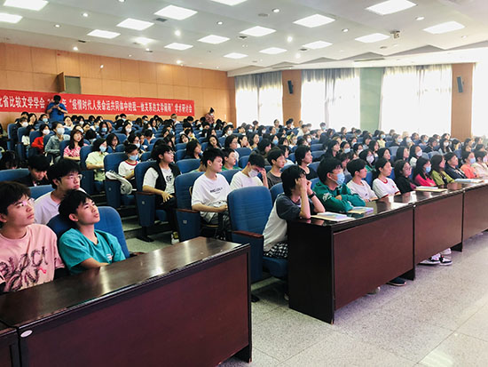 老生代表、2020级本科生何汶宪向新生们讲述了自己入校以来的成长与思考,结合自己入伍和参加暑期社会实践支教经历,鼓励新生们珍惜大学生活,心存敬畏、勇于尝试、坚持阅读、积极投身观察和实践;将小我融入大我,在大学中学会承担责任,适应社会、描绘自己的精彩人生。