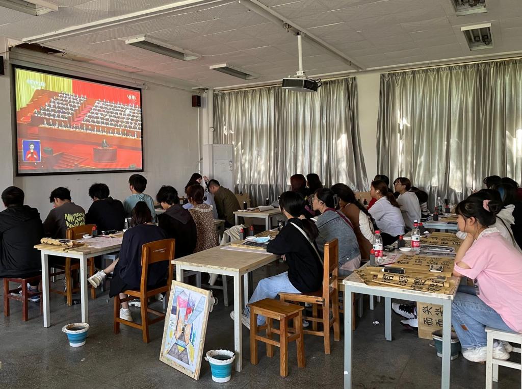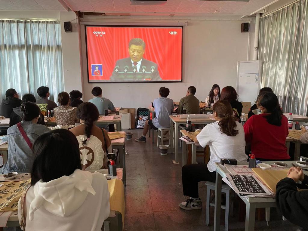 10月16日上午10时,中国共产党第二十次全国代表大会在北京开幕。习近平总书记代表十九届中央委员会向党的二十大作报告。学院领导班子、党委委员、各党支部书记、部分预备党员在学院会议室集中收听收看直播,各年级分别在教室、宿舍同步观看,认真聆听、学习、热议习近平总书记的报告。