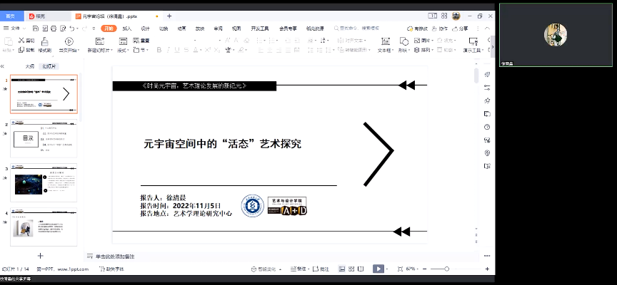 会议首先对去年的论坛主题《人工智能与艺术理论》进行了回顾,并提出了对艺术理论应当紧扣时代脉搏的期望。刘凡教授提到:“ 在后疫情时代,‘元宇宙’仿佛是一个‘未来已来’的概念。例如今天我们的会议,也是在这个虚拟的云端空间相互切磋探讨,这一方式已经适应了我们的生活。我们创办这样的一个论坛的初衷,是为青年学子提供一个交流和发声的平台。研究生同学的文章固然有青涩的一面,但是在这个平台上,他们用开阔的视野和活跃的思维展现出了自己对新事物的敏感,这是他们非常显著的一种优势。”