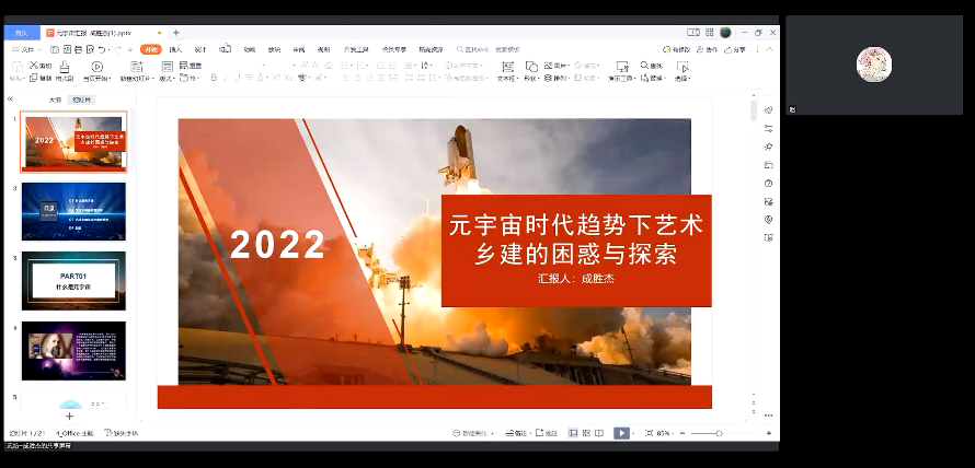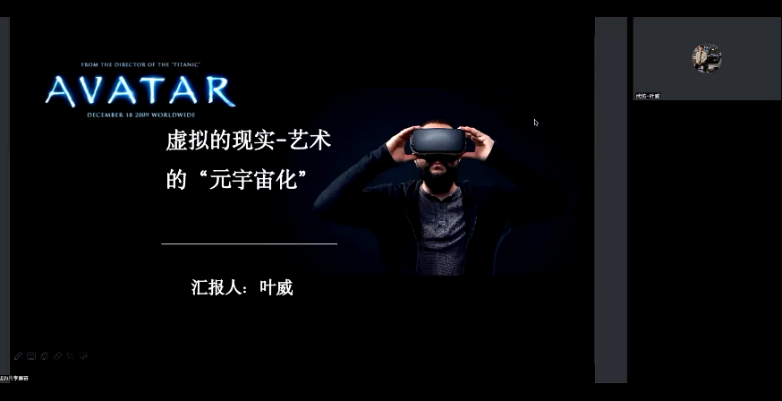 刘凡教授及评委老师们对同学们的汇报进行了中肯的评价并予以点拨,其中部分同学的题目引人深思:成胜杰在报告中提出的在“元宇宙时代”如何认识乡村建设在艺术中的现实地位问题。在元宇宙中解决现实问题是否是一种逃避?现在,我们应当思考的是元宇宙如何服务于艺术乡建,并在现实中取得成果。卢文政的报告,引发了对元宇宙中的亚文化研究的探讨。叶威表现出了探索新的跨学科研究领域的勇气,令人印象深刻。