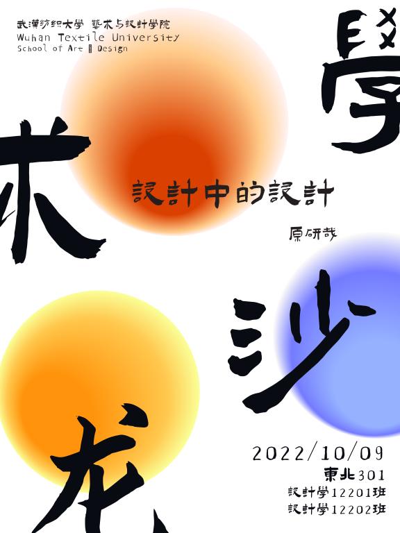 为确保读书活动有效、深入、有序地开展,促进我校学术氛围,提高教师和学生的学术热情,10月9日下午,设计学12201班、12202班成立了以刘元文老师为评委,以韦苏菲,程伟龙,陈银,董雅洁,范思雨,马昕怡,闻搏,王思熠八个同学为组长的八个学术沙龙小组。领导小组根据活动目的,层层落实责任,分配任务,并制定了便于操作的活动计划,使得学术沙龙活动有计划、有检查、有总结,确保了读书活动落到实处,顺利实施。