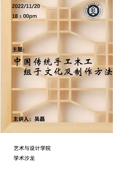 为了更好地提高学生对中国传统文化的了解,吴磊老师为我们展开了一番关于“中国传统手工木工-组子文化及制作方法”的学术沙龙,11月20日在色情直播平台