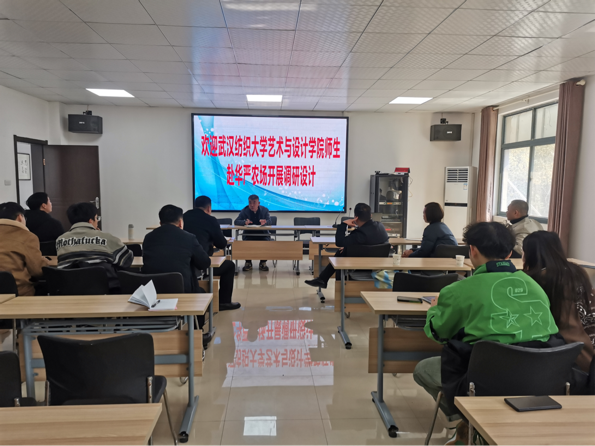 上午,双方召开座谈会,华严农场党委书记刘清涛对学院一行表示热烈欢迎。他提到,年初贵院领导前来考察,双方围绕产学研合作、校地合作、推进乡村振兴等事宜进行研讨,并签订校地合作实习基地协议,为此次开展实习实践活动奠定了基础。他强调,华严农场始终坚持以党建为引领,把美好环境与幸福生活共同缔造作为助推乡村振兴的一项重要工程来抓,全面践行“五共”理念,丰富共同缔造内容,逐步实现集体增强、农民增收、农业增质、乡村增色。鄢章民表示,艺术学院贯彻落实王蒙徽书记在湖北省第十二次党代会重要指示,坚持“走好新时代党的群众路线,始终保持与人民群众的血肉联系”,结合地区实际,充分发挥学院特色和优势,广泛开展美好环境与幸福生活共同缔造活动,他就前期概念性景观雕塑设计方案现场进行了汇报交流。邱杰对调研及设计工作进行了部署安排。