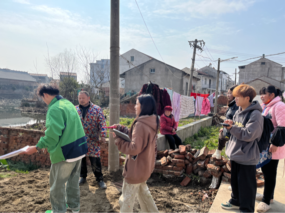 当天下午,学生以小组为单位分别对“小三园”、蚌湖老街和蚌湖社区广场公园分别进行了实地测绘,并通过实地走访当地农户、文化馆等,深入了解当地气候、历史、文化、物产等信息,并对收集的数据进行了复验、整合,同时完成了对典型村户进行深入调研。